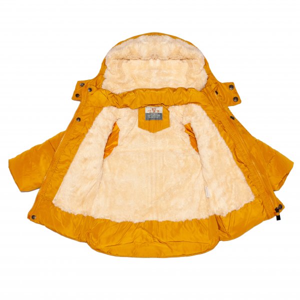 Geci copii cu gluga de iarna cu blana 1527 mustar 90-130cm