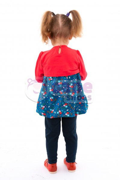 - Topul este reprezentat de o bluzita -rochita cu un bolero aplicat .Acesta poate fi purtat asa cum este prezentat in imagine dar se poate asorta si cu o pereche de dresuri pentu fete , devenind o tinuta usor eleganta .