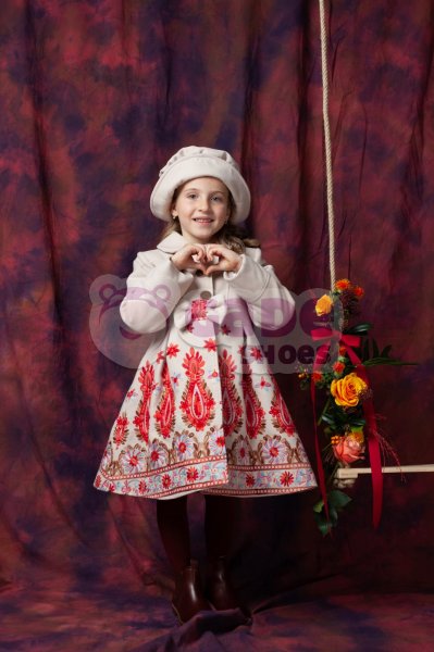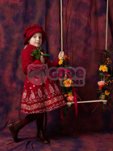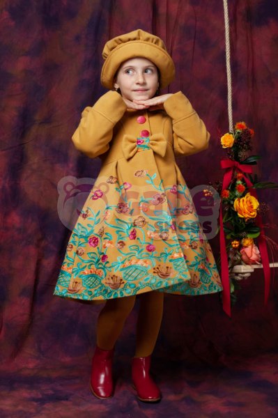 Palton fete cu palarie brodat Andreea tex galben mustar 1an-10ani