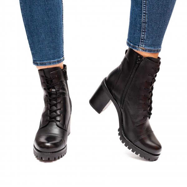 Ghete dama piele vatuite toc de 7cm 238H07 negru 36-41