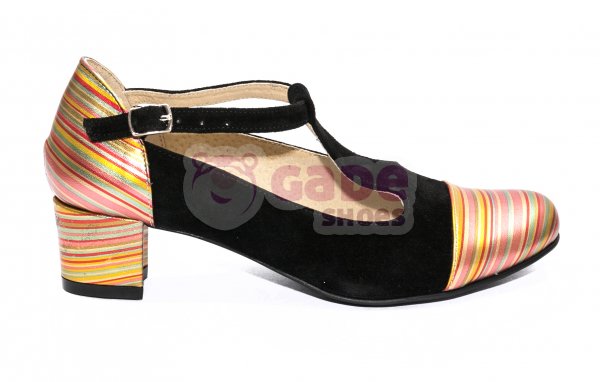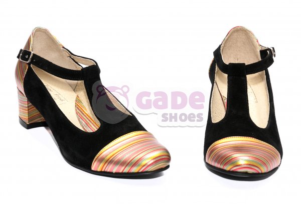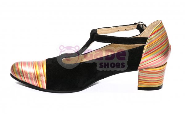 Pantofi dama cu toc mic 219 negru curcubeu 34-40