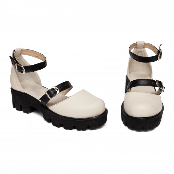 Sandale dama din piele 1804 Cika bej negru 34-41