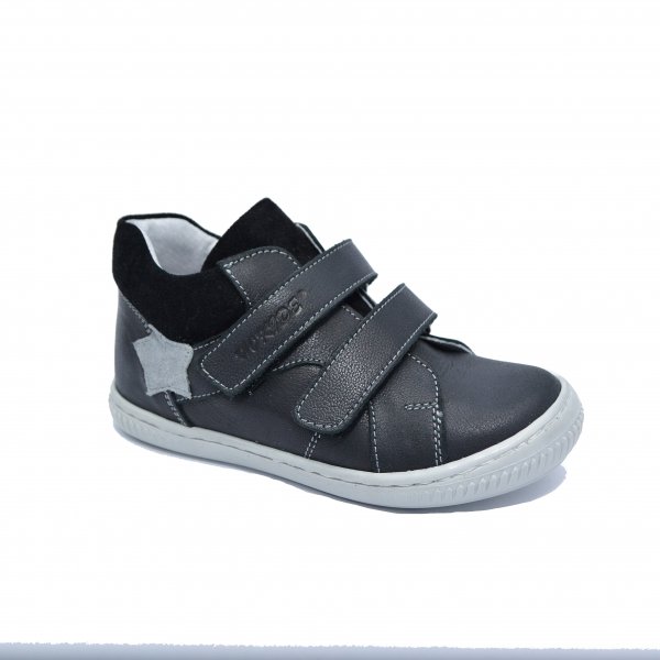 - Ghete din piele box blumarin, decor stea galbena lateral, cusaturi albe.