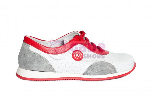 Pantofi copii piele sport pj shoes Oskar alb rosu 31-38