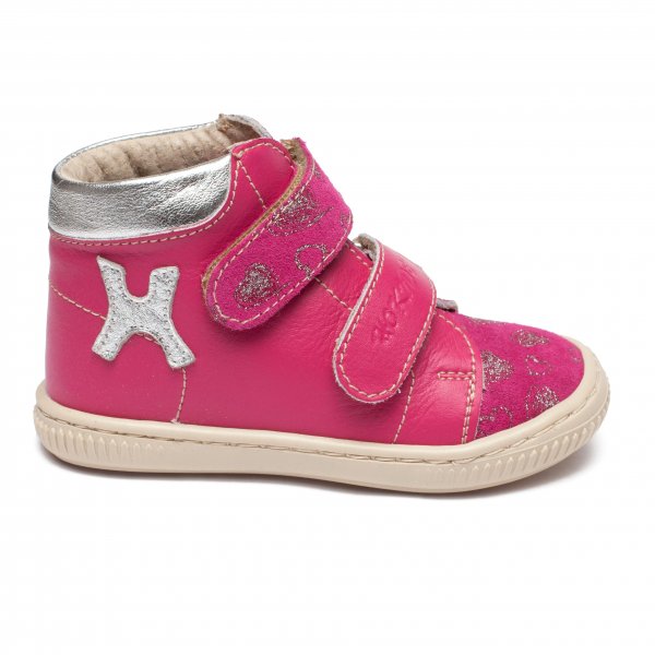 Ghete copii - Ghete hokide fete din piele cu talonet 417 fuxia print 18-25
