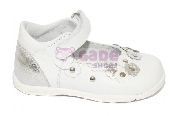 Pantofi balerini copii - Pantofiori balerini fetite din piele cu talonet pj shoes Emma alb 20-26