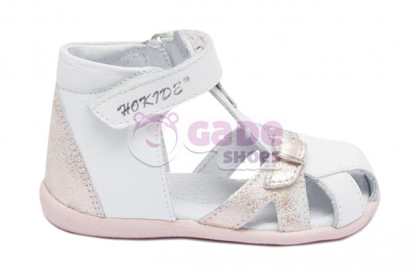 Sandale copii - Sandalute fete inalte pe glezna hokide 231 alb roz sidef 18-24